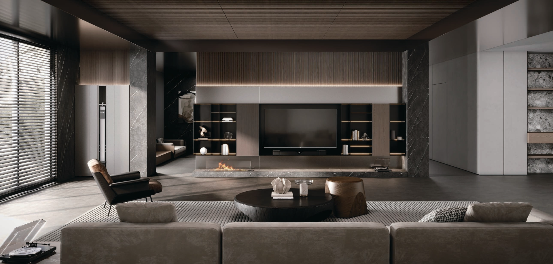 We offer integrated solutions for living rooms with modern designs and premium quality, including storage units, TV cabinets, and wall shelves. Enhance your space with stylish and functional options tailored to your needs