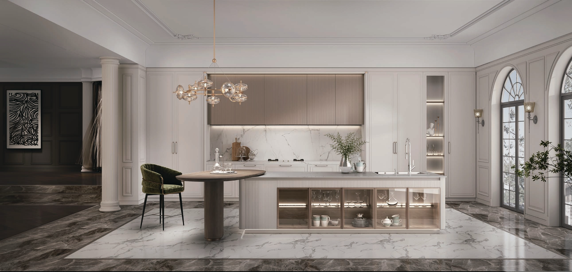 تصاميم مطابخ عصرية تجمع بين الأناقة والجودة العالية، مصممة بعناية لتوفر تجربة استخدام سلسة وعملية. نستخدم أفضل المواد لضمان المتانة والأداء المثالي، مع خيارات متعددة تناسب جميع الأذواق